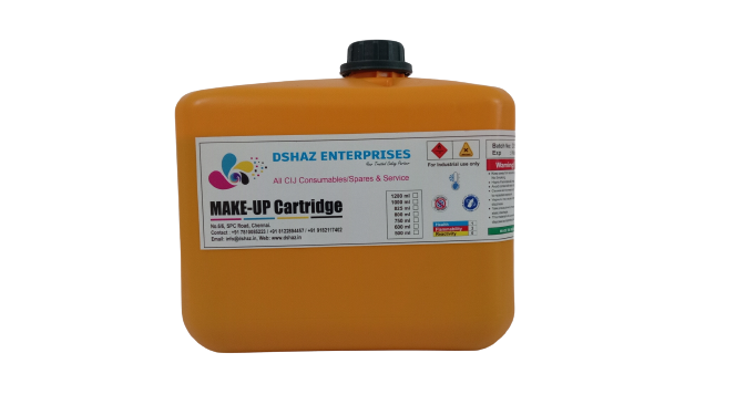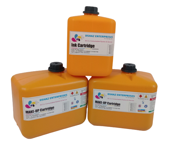 offers a wide range of Consumables for continous inkjet printers. We supply 100% Compatible /Alternate CIJ Ink, CIJ Makeup and Cleaning / Washing solutions which can be used as an alternative for all major brand CIJ printers. We supply these products in Cartridges / Bottles in the same packaging designed to fit perfectly in your CIJ Inkjet Printers.